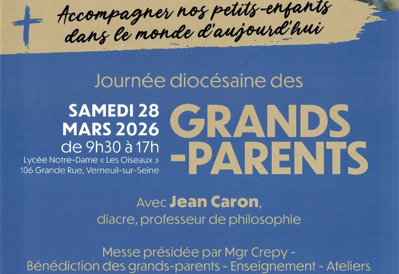 La prochaine Journée diocésaine des grands-parents aura lieu le 28 mars 2026 au lycée Notre-Dame Les Oiseaux à Verneuil-sur-Seine.